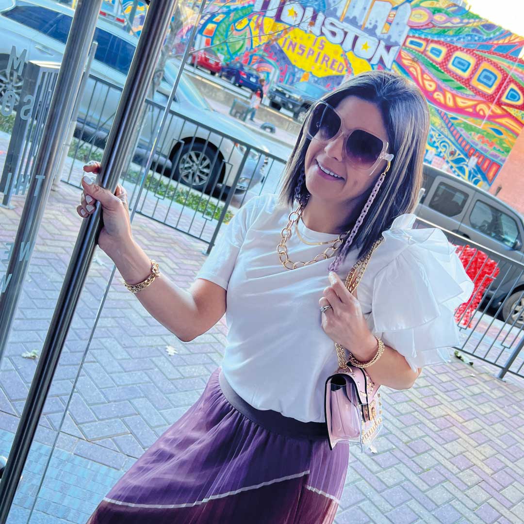 Tiered ruffles on one sleeve give a fresh update to a soft and comfy shirt, making it a sophisticated mixed-media top.